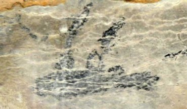 An international team of scientists has discovered stylistically unique ancient drawings, including the only known prehistoric depiction of a now-extinct giant sloth lemur, on the walls of a rock shelter in western Madagascar. Photograph (top) and artist’s sketch (bottom) of the inferred hunting scene: hunter (background, left) extends weapon toward inverted large animal in foreground; two dog-like zoomorphs are on the right. Image credit: Burney...