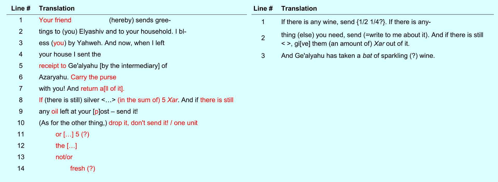 “It begins with a request for wine (‘If there is any wine, send [quantity]’), as well as a guarantee for assistance if the addressee has any requests of his own (‘If there is anything [else] you need, send [= write to me about it]’).”