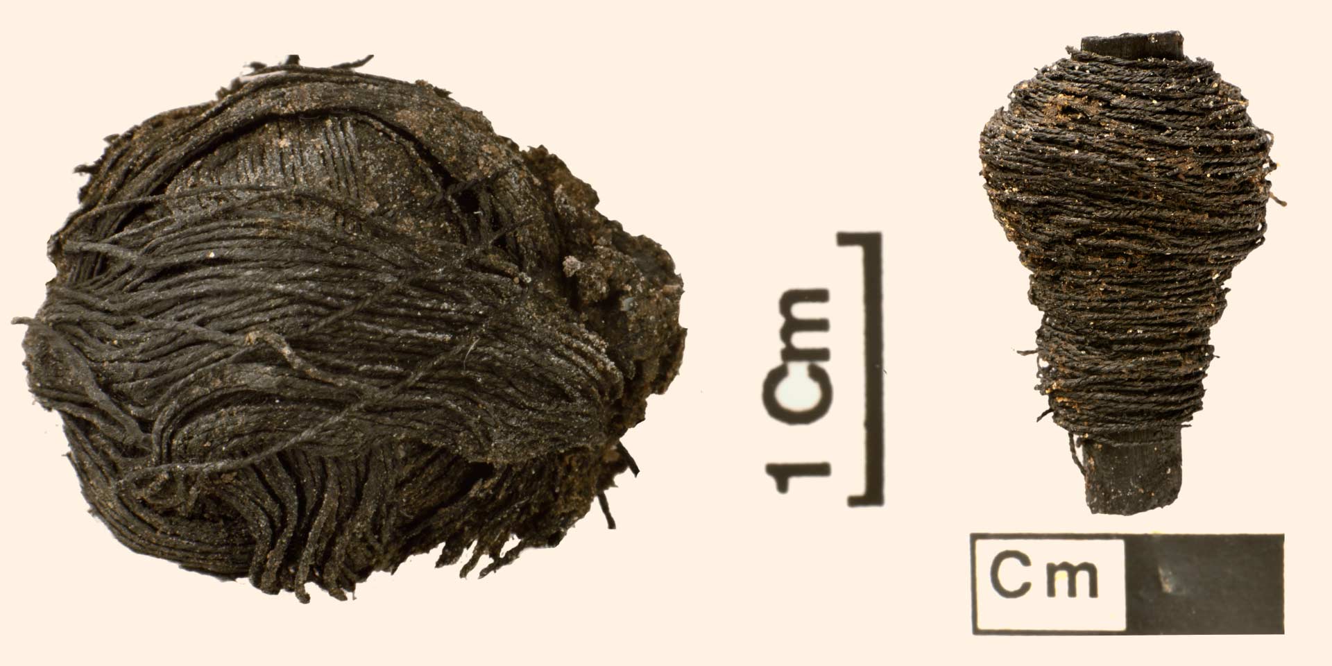 Finds of textiles and fibers illuminate the stages of textile production, and include hanks of prepared fiber, thread wound on wooden sticks or into balls, and finished fabrics of various qualities.