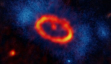HD 53143 is a one-billion-year-old solar-type star located 59.8 light-years away in the constellation of Carina. This composite image shows the HD 53143 star system. Shown in orange/red, millimeter-wavelength data from ALMA, reveal a previously unobserved eccentric debris disk orbiting HD 53143 in the form of an ellipse. An unresolved dot shows the star off-center near the southern foci of the disk, while a second unresolved dot to the north indicates...