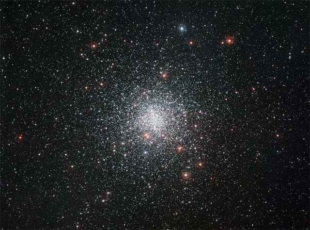 The new image from the Wide Field Imager (WFI) on ESO’s MPG/ESO 2.2-m telescope reveals many more of the cluster’s tens of thousands of stars and shows the cluster against the rich background of the Milky Way.