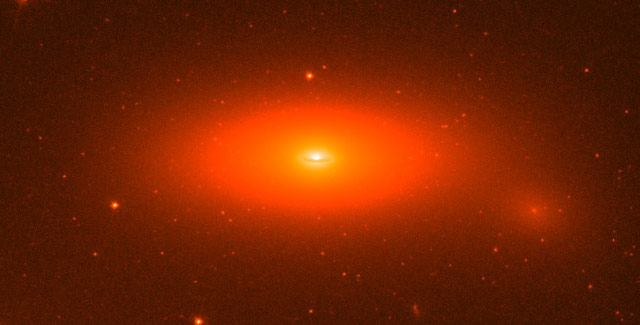 The lenticular galaxy NGC 1277 lies about 220 million light-years away in the constellation Perseus. It is only ten percent the size and mass of our Milky Way Galaxy. Despite galaxy’s diminutive size, the supermassive black hole at its heart weighs in at roughly 17 billion solar masses and is more than 11 times as wide as Neptune’s orbit around the Sun.