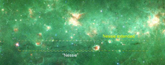 The team spotted the galactic bone while studying a dust cloud nicknamed Nessie.
