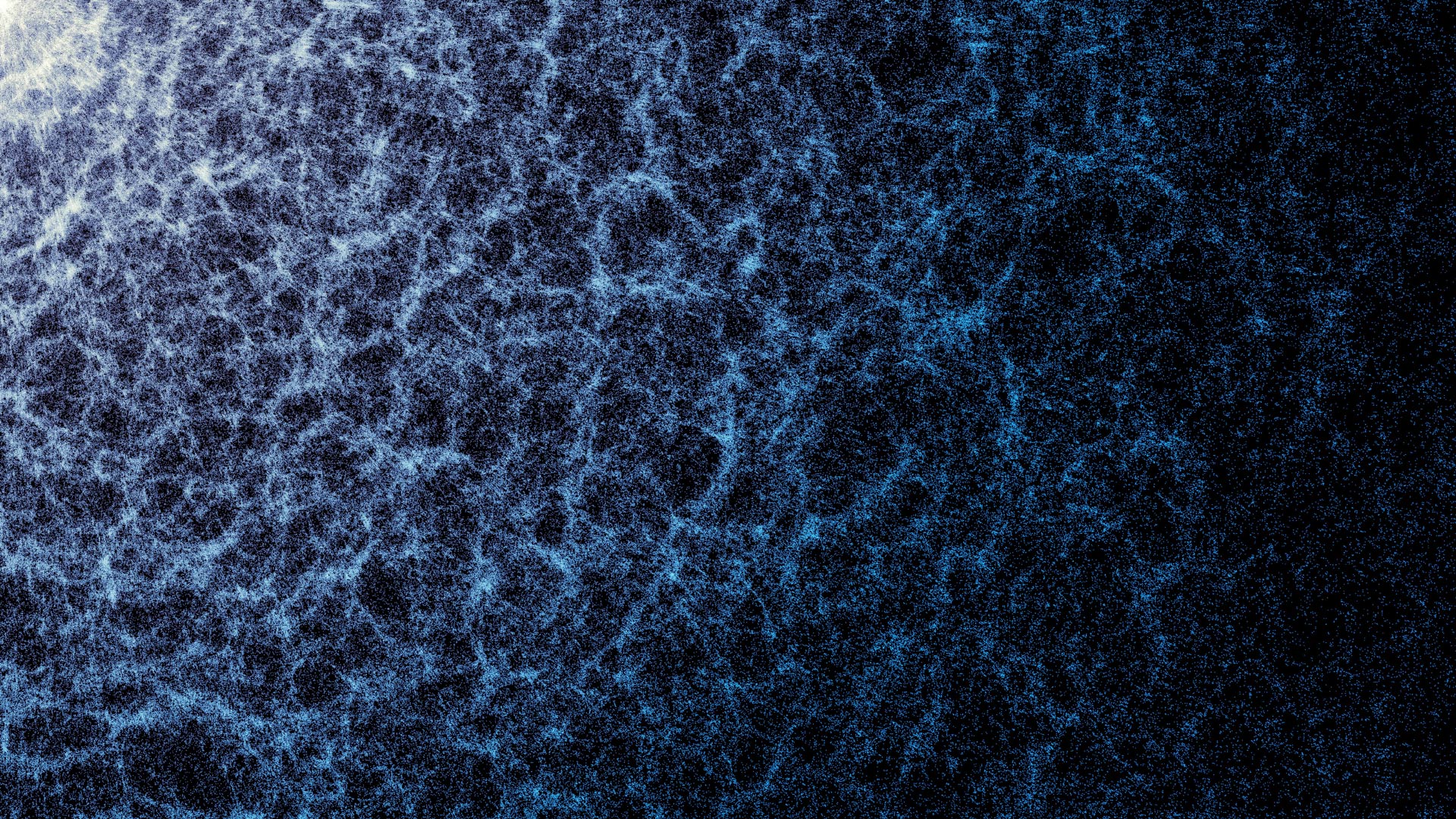 A small portion of DESI’s year-five map in which the large-scale structure of the Universe, created by gravity, is visible; each dot represents a galaxy; the denser areas indicate regions where galaxies and galaxy clusters have clumped together to form the strands of the cosmic web; also seen are large voids between the filaments. Image credit: DESI Collaboration / DESI Member Institutions / DOE / KPNO / NOIRLab / NSF / AURA / R. Proctor / M. Zamani, NSF’s NOIRLab.