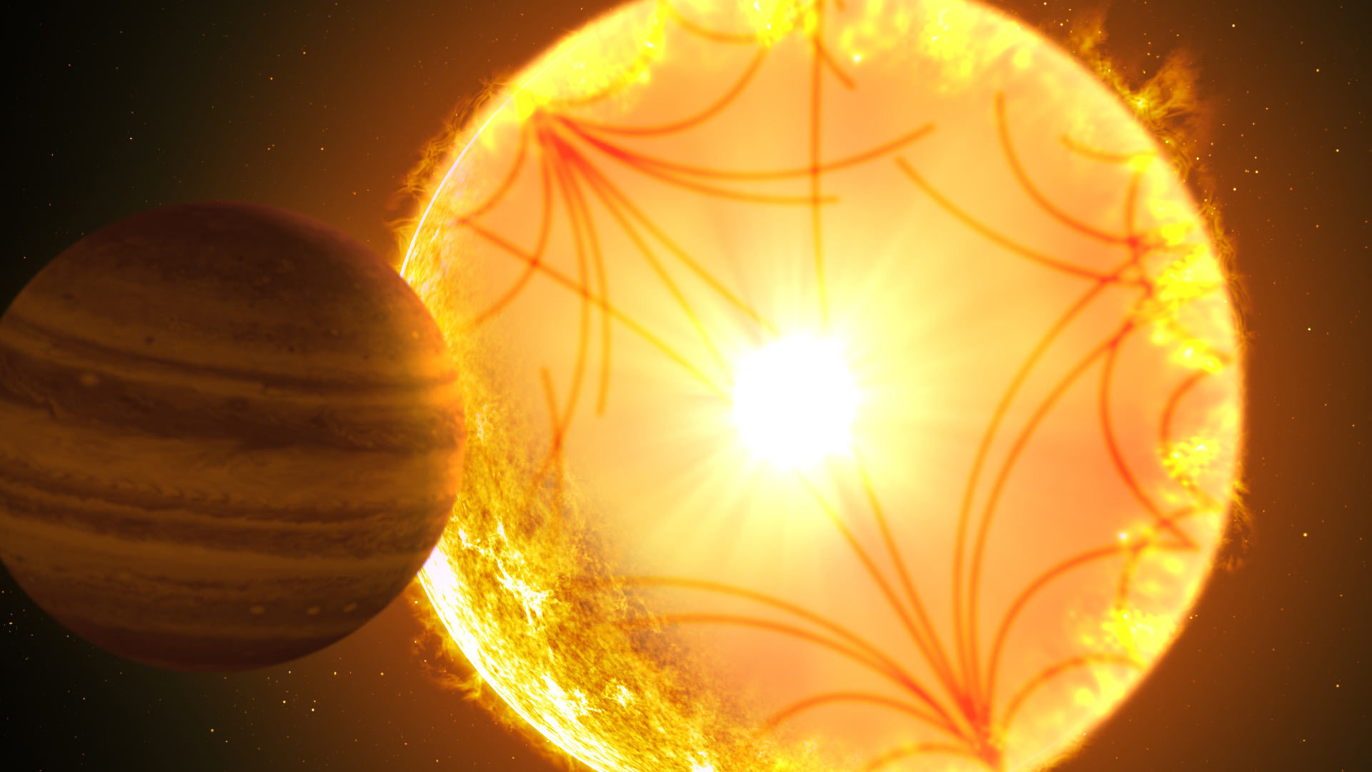 An artist’s concept of the Kepler-1658 system. Sound waves propagating through the stellar interior were used to characterize the star and the planet. Image credit: Gabriel Perez Diaz / Instituto de Astrofísica de Canarias.