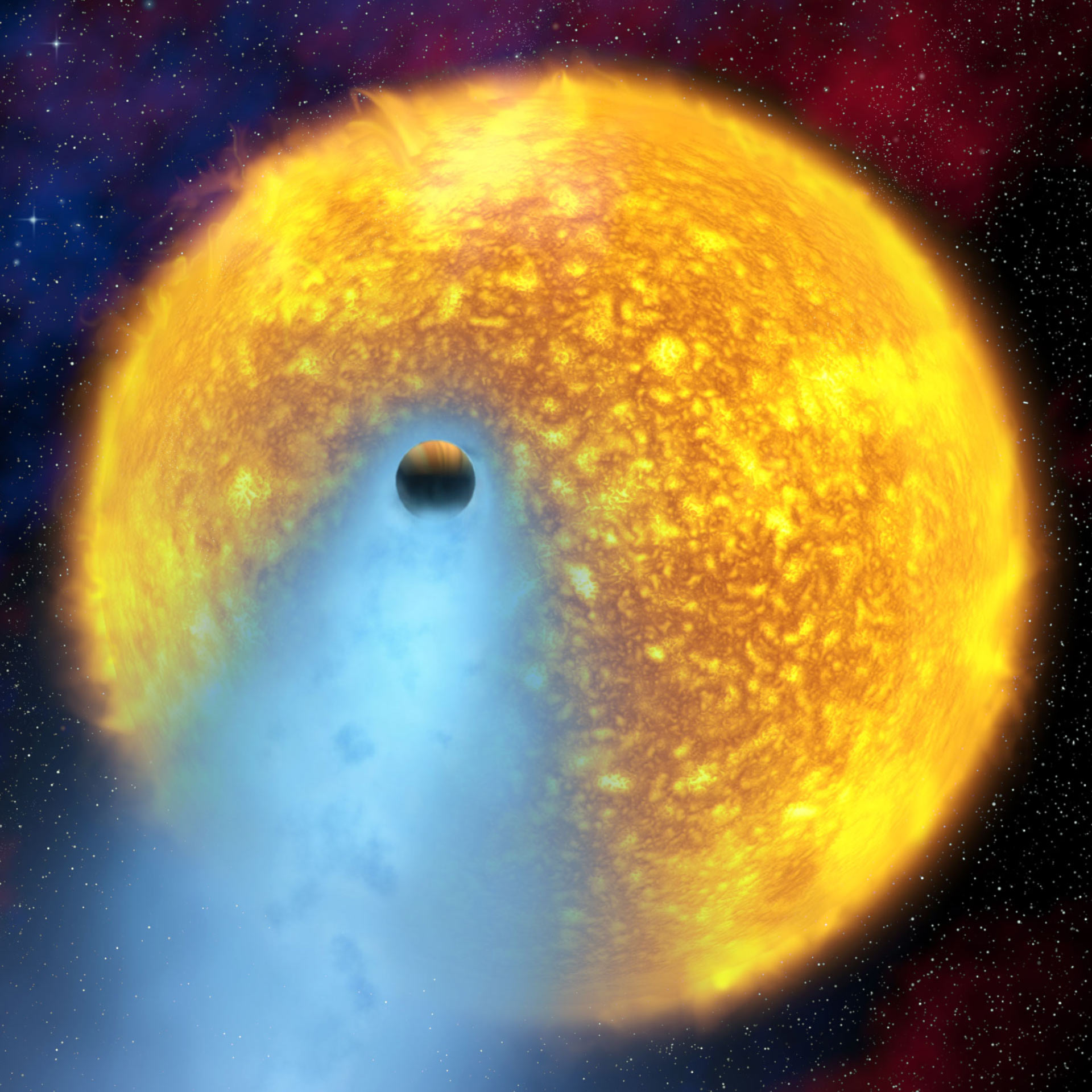 Artist’s illustration showing a massive exoplanet falling into its host star — one of the possible explanations for the strange dimming of KIC 8462852. Image credit: NASA / ESA / Alfred Vidal-Madjar, Institut d’Astrophysique de Paris, CNRS.