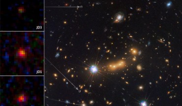 By combining the power of NASA’s Hubble and Spitzer space telescopes, an international team of astronomers has discovered a candidate for the most distant galaxy known to date. This image shows the massive galaxy cluster MACS J0647+7015. Insets at left show three magnified views of the young dwarf galaxy MACS0647-JD (NASA / ESA / M. Postman / D. Coe / STScI / CLASH Team) A study, accepted for publication in the Astrophysical Journal (arXiv.org...