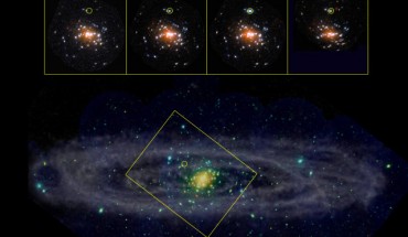 With the combined power of Earth-orbiting X-ray telescopes, including NASA’s Swift and ESA’s XMM-Newton, an international team of astronomers has found for the first time a microquasar beyond our Milky Way Galaxy. This image shows the Andromeda galaxy, also known as M31, as seen in X-rays with ESA’s XMM-Newton space observatory. The sequence of images at the top depict the center of the galaxy and were taken with XMM-Newton on four occasions...