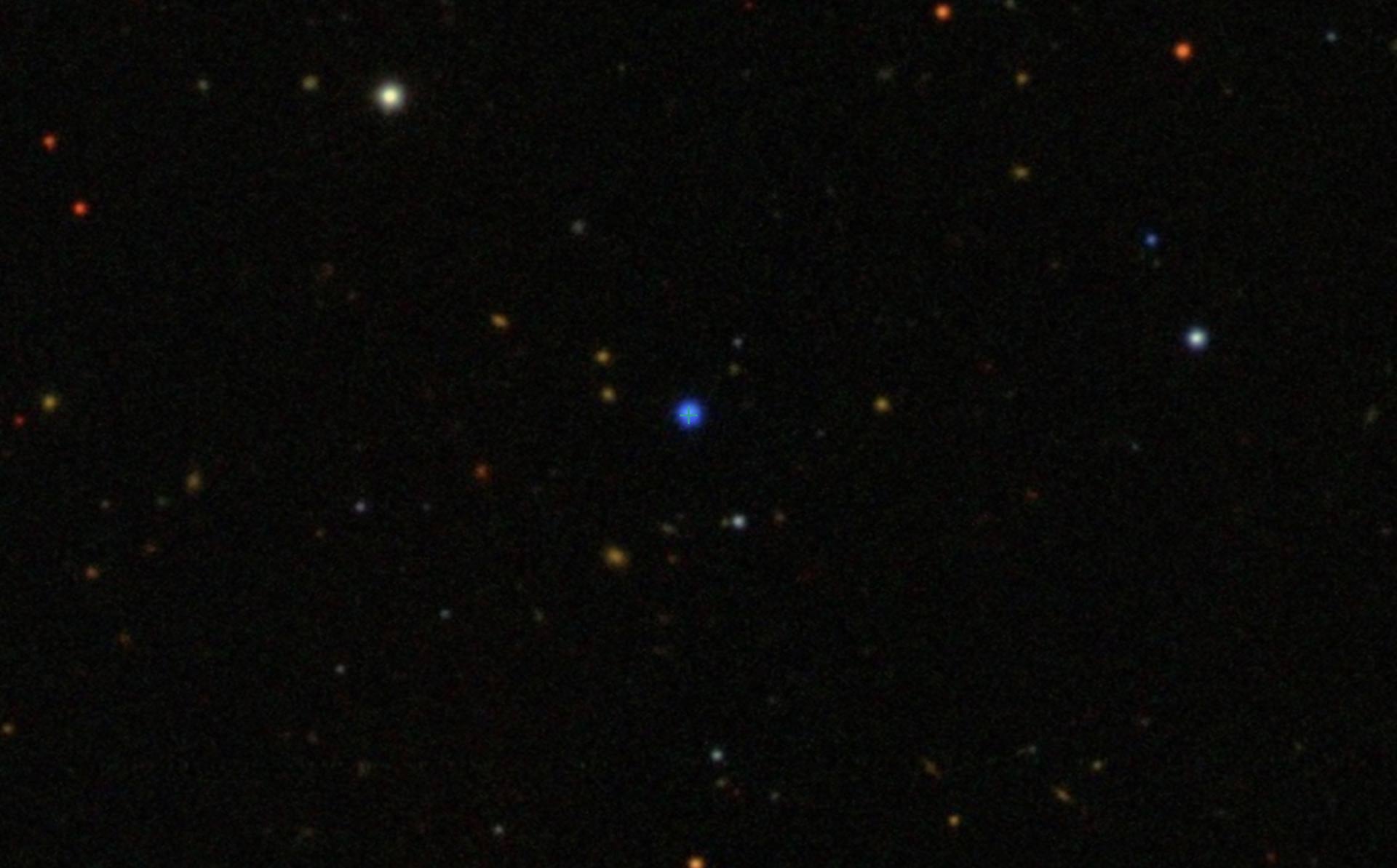 The white dwarf J1228+1040 (center). Image credit: SDSS / Centre de Données astronomiques de Strasbourg / SIMBAD.