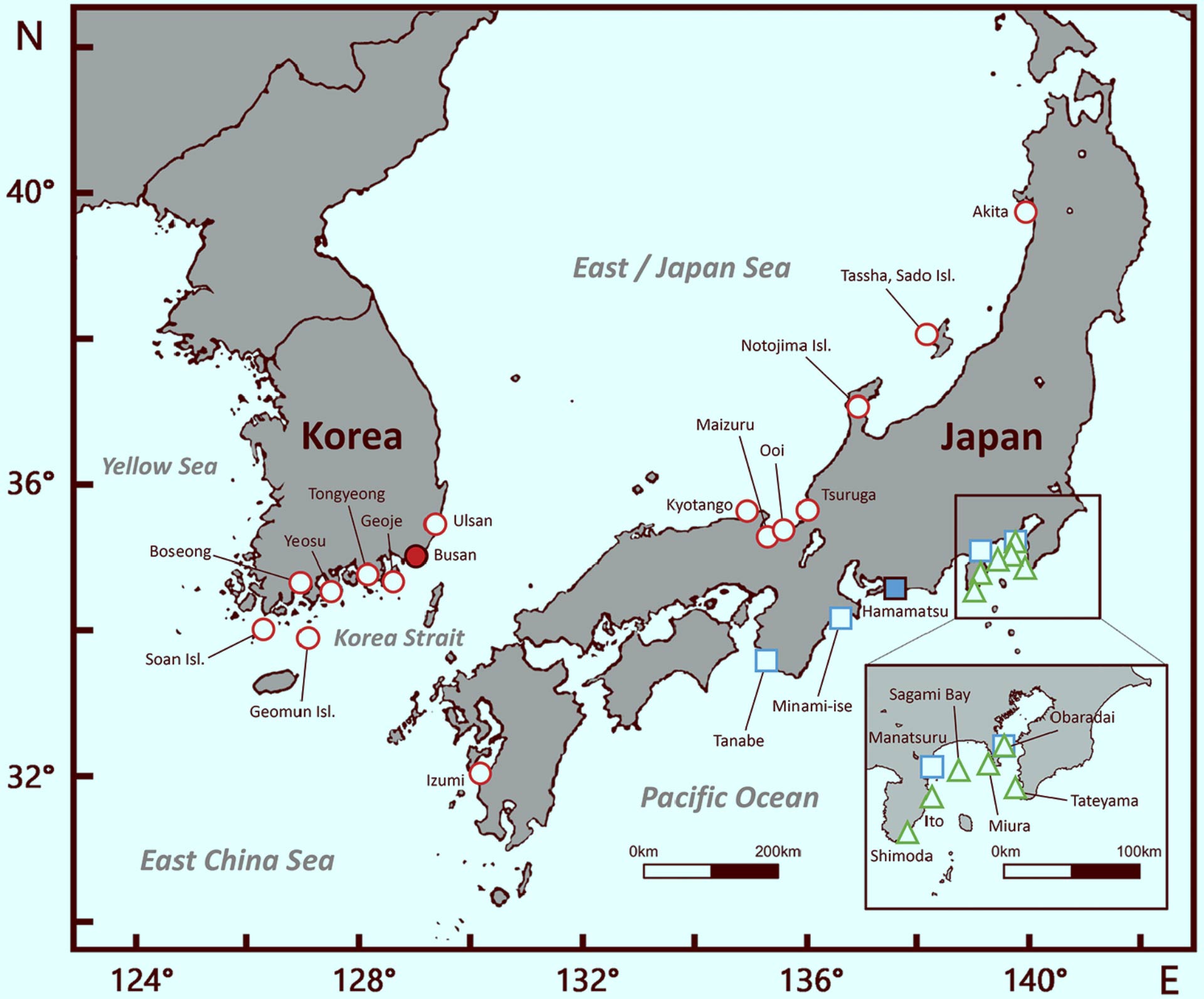 “It can also be found along the western coast of Kyushu (western Kagoshima Prefecture) and the northwestern coast of Honshu (from Kyoto Prefecture to Akita Prefecture).”