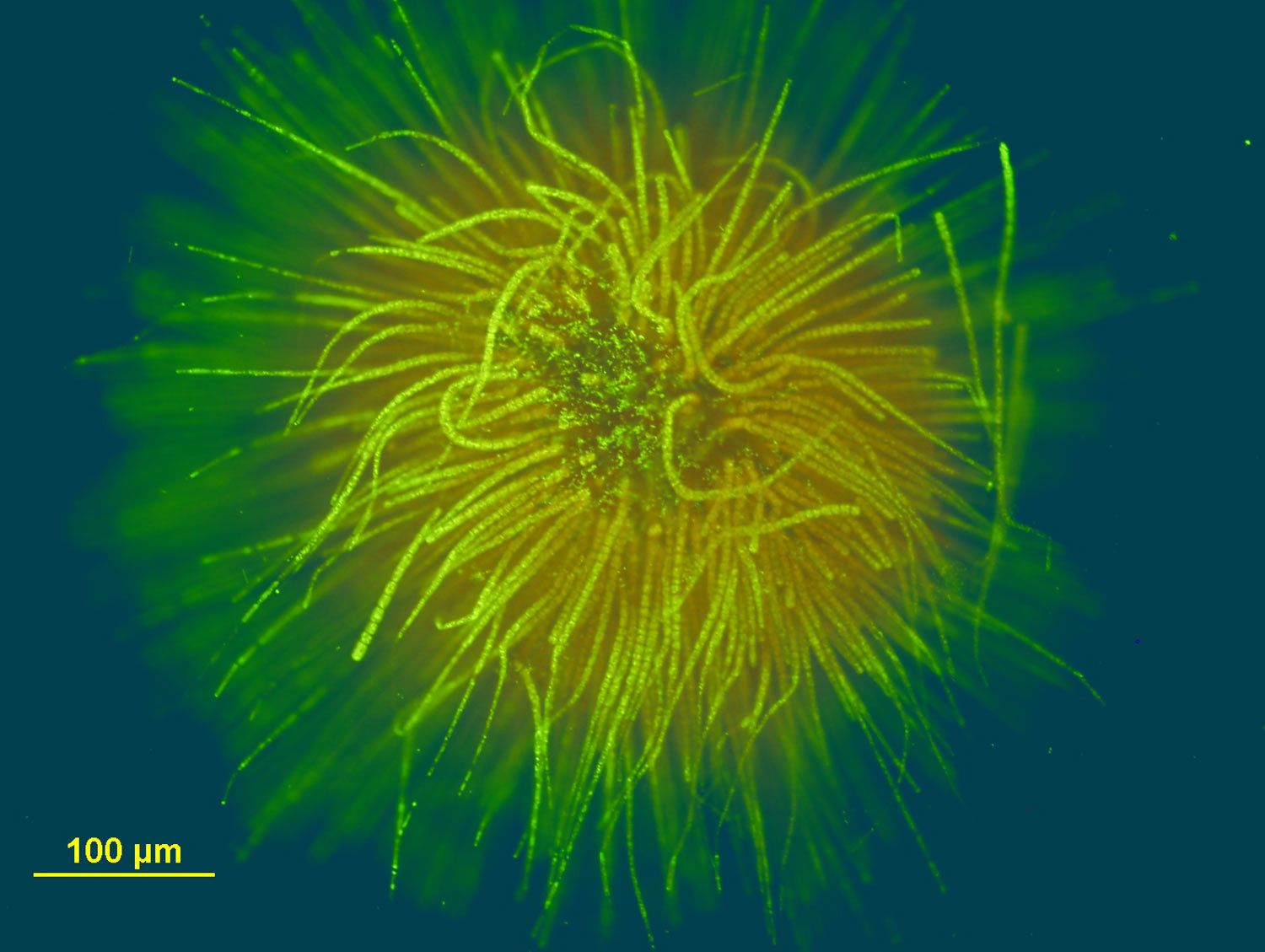 Gloeotrichia echinulata, a colonial species of cyanobacteria. Image credit: Barry Rosen, U.S. Geological Survey.