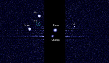 Astronomers using NASA/ESA Hubble Space Telescope have detected a fifth and tiniest moon yet orbiting the icy dwarf planet Pluto. This image, taken by the NASA/ESA Hubble Space Telescope, shows five moons orbiting the distant, icy dwarf planet Pluto. The green circle marks the newly discovered moon, designated S/2012 (134340) 1, or P5, as photographed by Hubble’s Wide Field Camera 3 on 7 July 2012 (NASA / ESA / M. Showalter / SETI Institute) Provisionally...