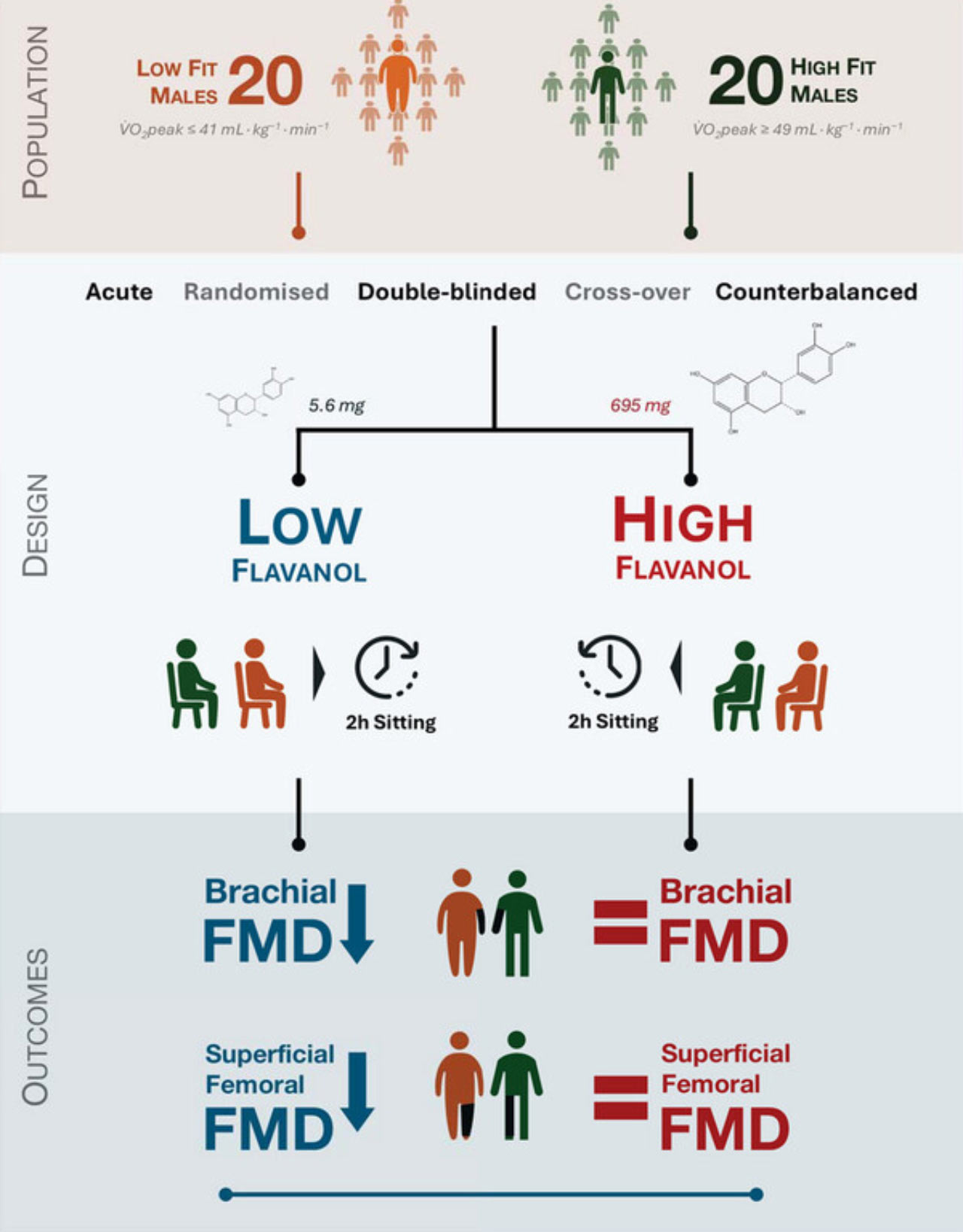 Alessio Daniele et al. Dietary flavanols preserve upper- and lower-limb endothelial function during sitting in high- and low-fit young healthy males. Journal of Physiology, published online October 29, 2025; doi: 10.1113/JP289038