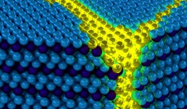 New research led by a University of Illinois physicist has proved the existence of a new form of matter — ‘excitonium,’ a solid crystal of excitons. The research, led by Professor Peter Abbamonte, is published in the December 8 issue of the journal Science. Artist’s depiction of the collective excitons of an excitonic solid. These excitations can be thought of as propagating domain walls (yellow) in an otherwise ordered solid exciton background...