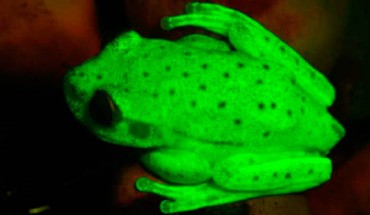 Scientists in Argentina have discovered a frog that glows in moonlight and at twilight. Fluorescence in terrestrial environments had previously only been traced to a few species of insects and birds and had never been scientifically reported in any of the world’s 7,000-plus amphibian species. Fluorescence in the polka-dot tree frog (Hypsiboas punctatus): adult male under UV-blue light (upper image) and white light (lower image). Image credit: Carlos...