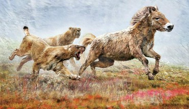 An international team of scientists has sequenced and analyzed the entire nuclear genome of the scimitar-toothed cat Homotherium latidens. Their results demonstrate that this extinct species was highly divergent from all living cat species and did not undergo any detectable gene flow with living cat species after their initial diversification 14 million years ago. A pair of Homotherium latidens chasing an ancient equid. Image credit: University of...