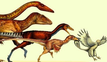 A new study published in the journal Science highlights the dramatic evolutionary transformation of carnivorous, ground-dwelling theropod dinosaurs into flying birds. The dinosaur lineage that evolved into birds shrank in body size continuously for 50 million years. Image credit: Michael S. Y. Lee et al. Science, 10.1126/science.1252243. “Birds out-shrank and out-evolved their dinosaurian ancestors, surviving where their larger, less evolvable relatives...