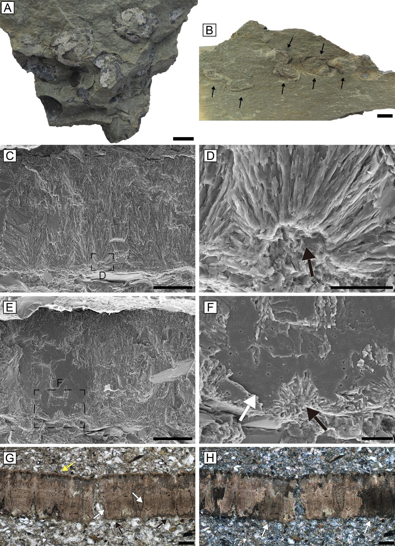 Clutch and eggshells of Testudoolithus aff. curiosa. Scale bars – 1 cm in (A, B), 100 μm in (C, E, G, H), 20 μm in (D, F). Image credit: Choi et al., doi: 10.1080/02724634.2023.2183866.