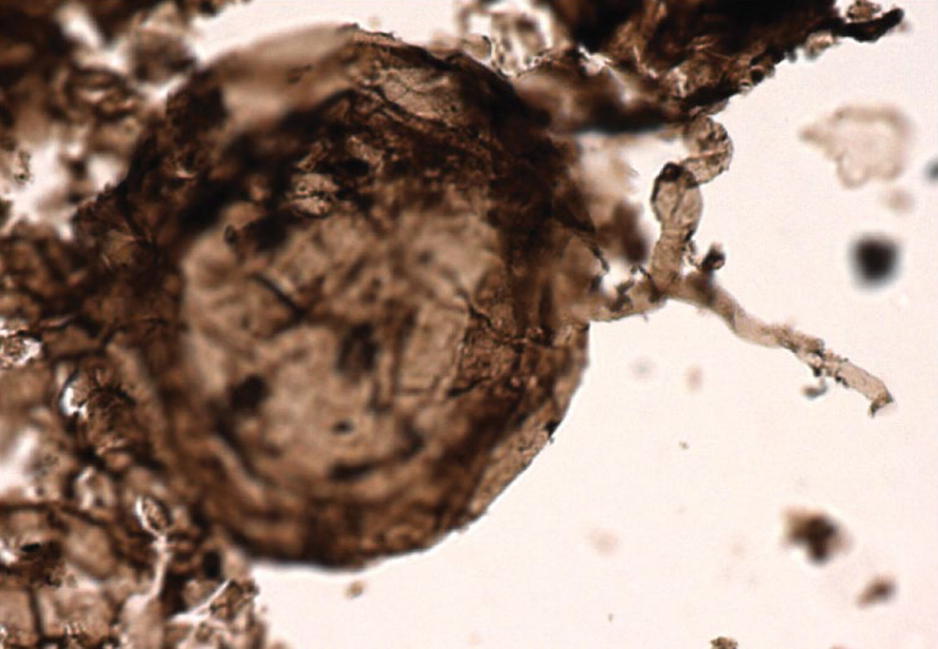 The paleontologists discovered abundant microfossils of a fungus named Ourasphaira giraldae.