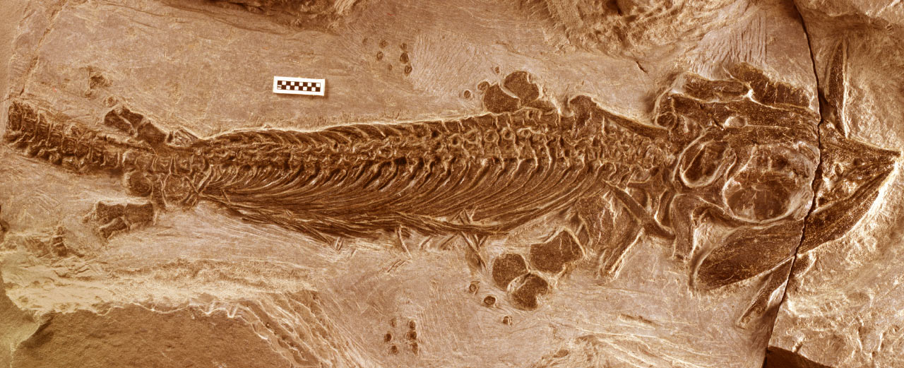 Paleontologists led by Prof Ryosuke Motani of the University of California, Davis, have discovered an amphibious ichthyosaur that lived in the seas of what is now China during the upper Lower Triassic, about 248 million years ago. The discovery is the first to link the dolphin-like ichthyosaur to its terrestrial ancestors, filling a gap in the fossil record.