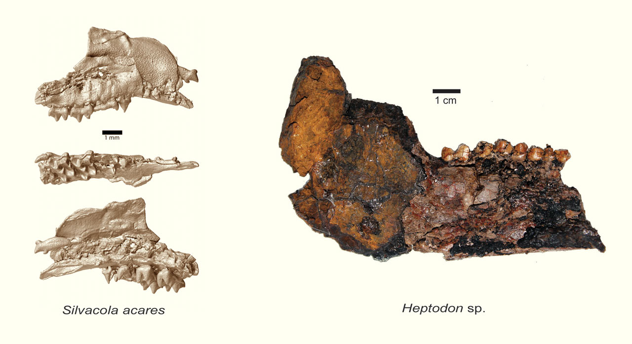 Left: Silvacola acares, a right maxilla. Right: Heptodon sp., a right dentary fragment. Image credit: Jaelyn J. Eberle et al.