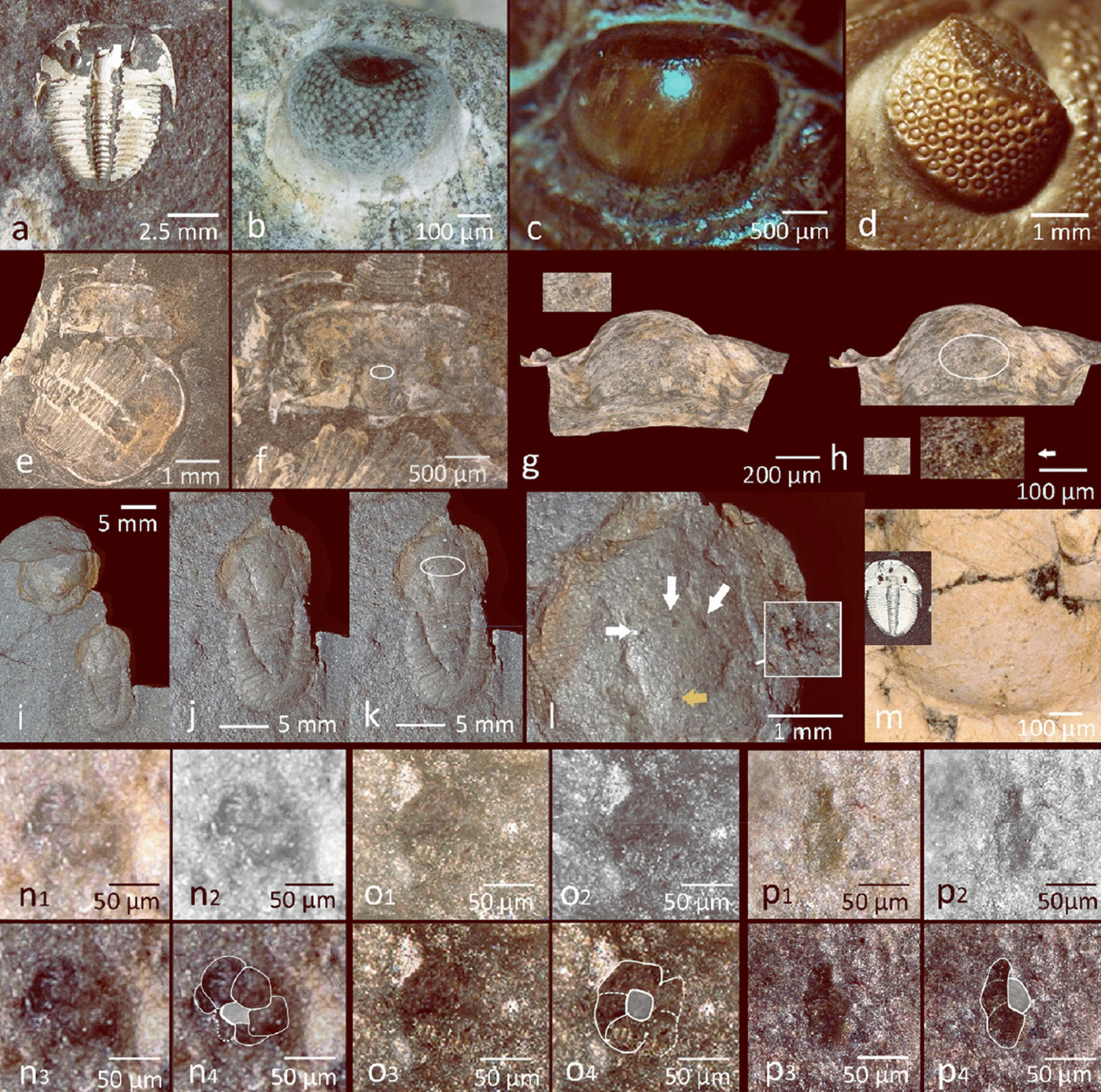 Compound (a-d) and median (e-p) eyes of trilobites. Image credit: B. Schoenemann & E.N.K. Clarkson, doi: 10.1038/s41598-023-31089-7.