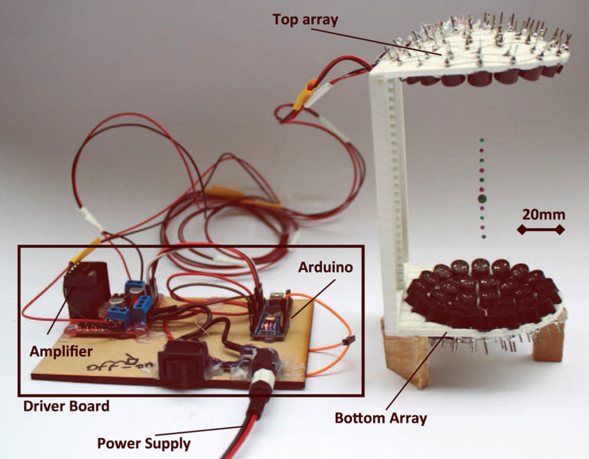 Asier Marzo et al. 2017. TinyLev: A multi-emitter single-axis acoustic levitator. Review of Scientific Instruments 88: 085105; doi: 10.1063/1.4989995