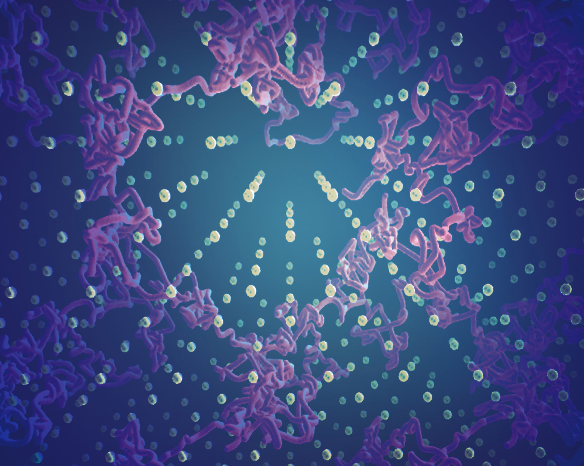 Visualization of molecular dynamics simulations showing the fast diffusion of hydrogen ions (pink trajectories) within the solid lattice of oxygen in superionic ice. Image credit: S. Hamel / M. Millot / J.Wickboldt / LLNL / NIF.
