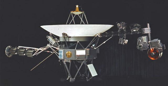 Photograph of one of the two identical Voyager space probes Voyager 1 and Voyager 2 launched in 1977 (NASA)