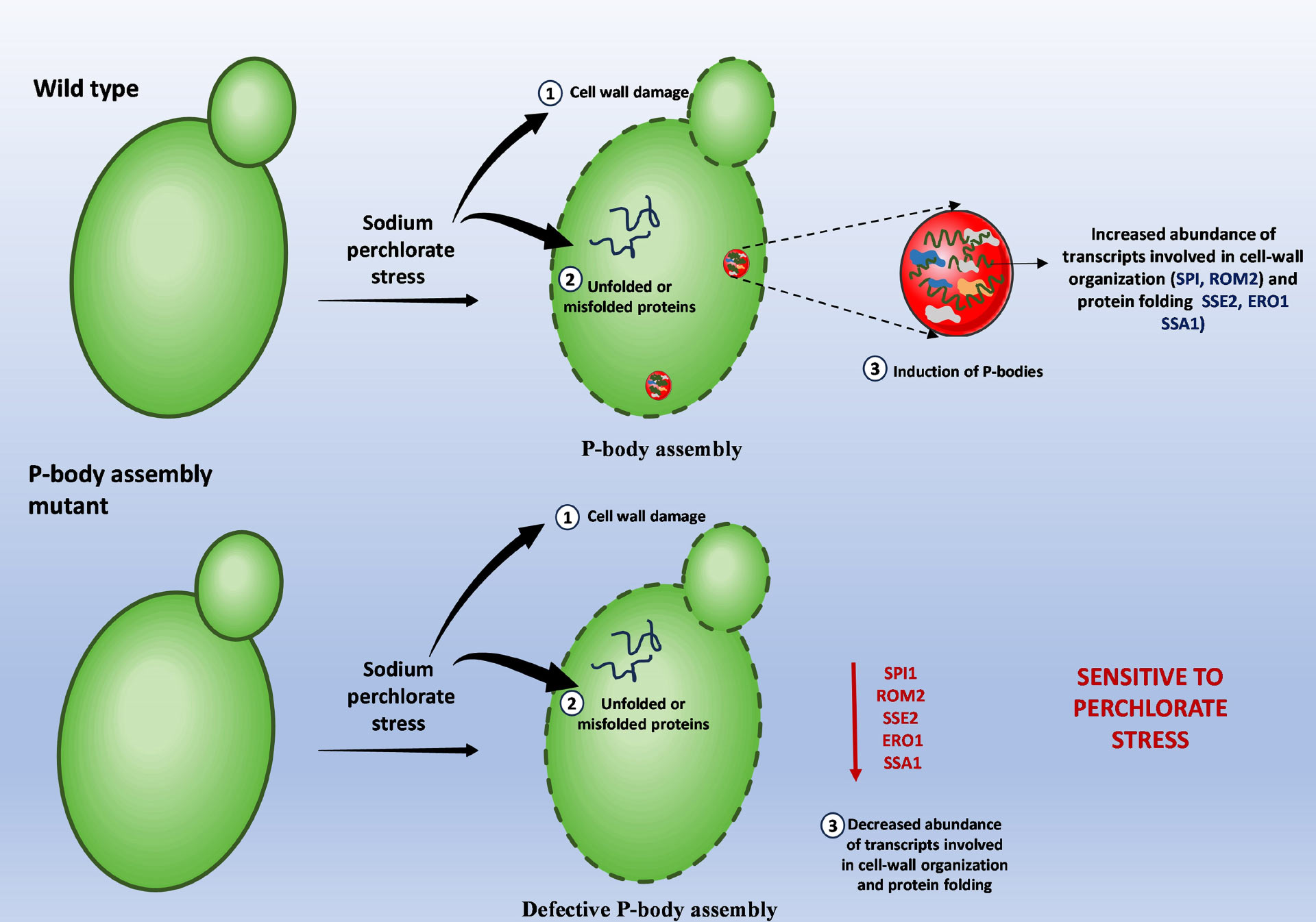 Shock waves induced the assembly of stress granules and P-bodies; perchlorate caused yeast to make P-bodies but not stress granules.