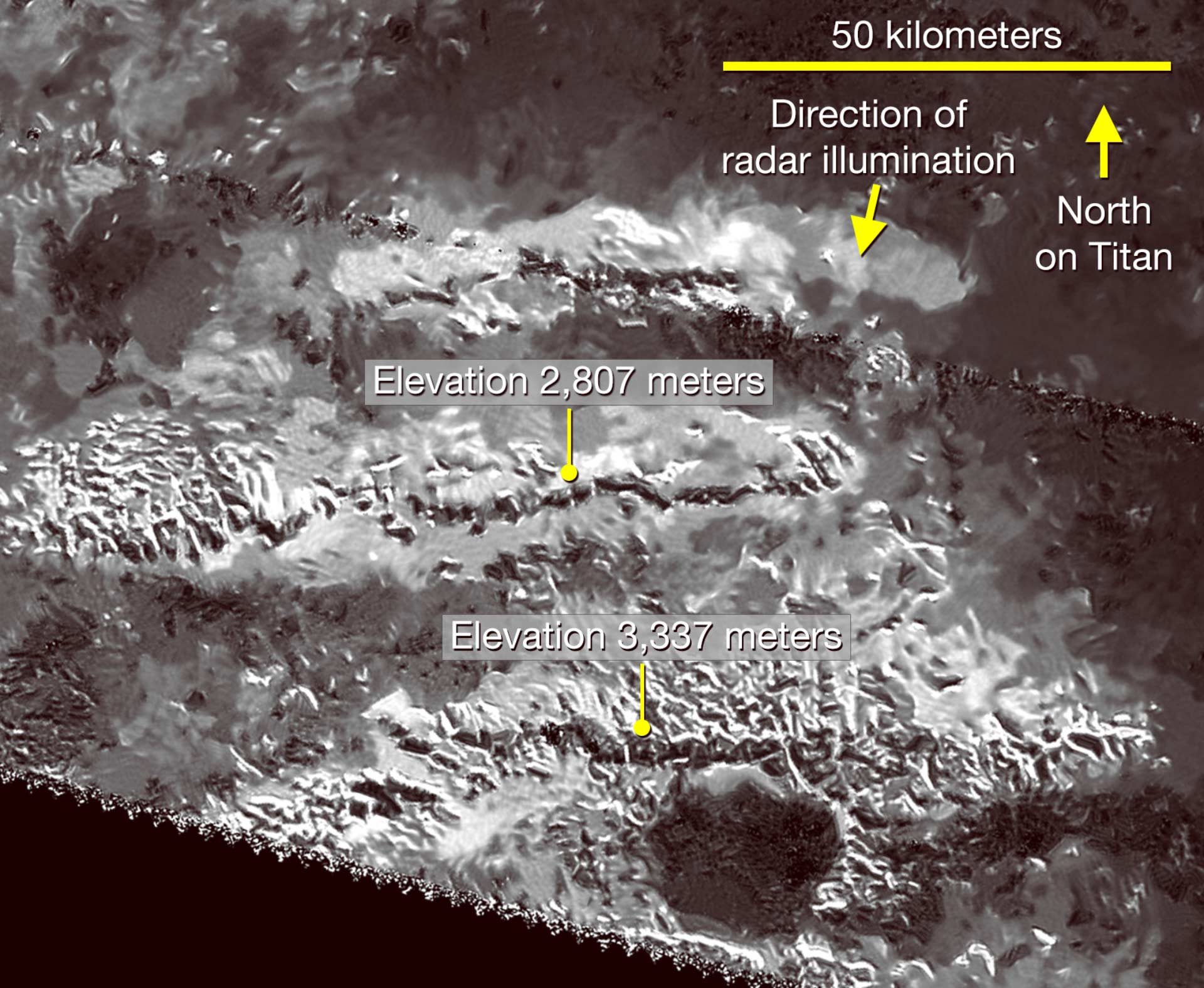 Because of these characteristics, scientists didn’t expect mountains on Titan would tower quite as high as those on Earth.